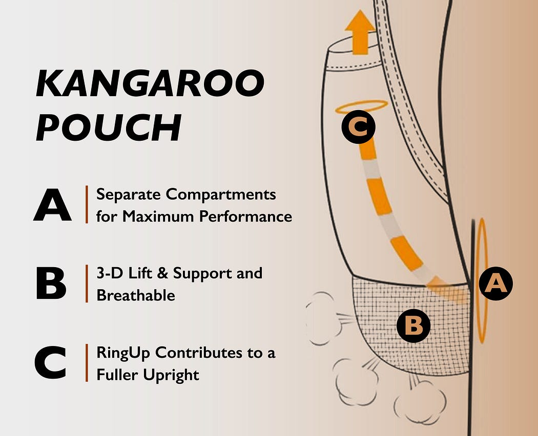 Push-Up Pouch Design: Built-in lift technology pushes and supports your joey upward and outward, enhancing appearance and improving circulation.