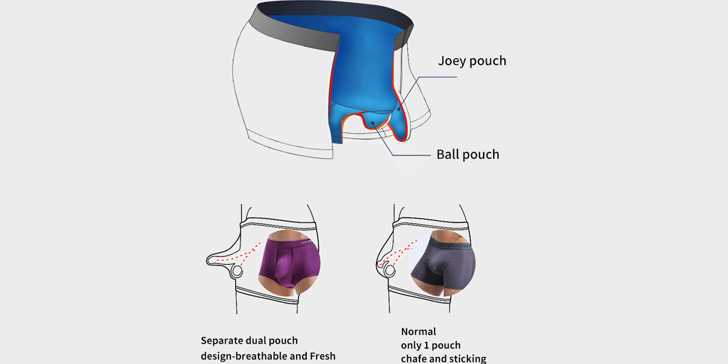 - Advanced Dual Pouch Technology for Optimal Separation: Building on the 'elephant nose' pouch concept, our advanced dual pouch system creates two distinct compartments: one for your 'joey' and another for your 'balls.' This physical separation is crucial for preventing skin-on-skin friction, which is the leading cause of chafing and irritation. By isolating these areas, we ensure maximum support and minimize heat transfer, maintaining an optimal temperature for male health and all-day comfort.